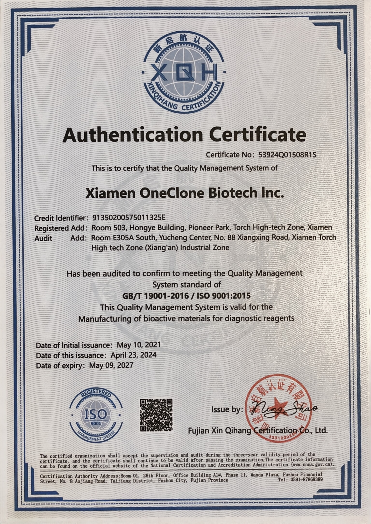 認(rèn)證證書