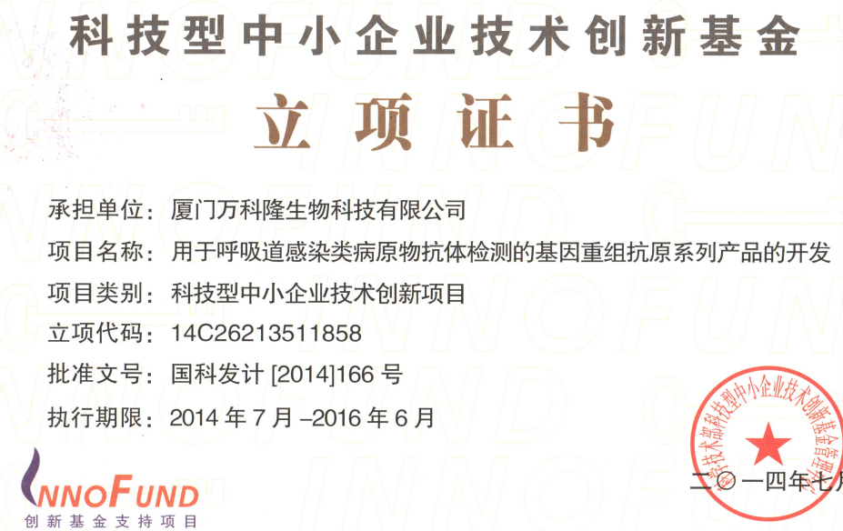 科技型中小企業(yè)技術(shù)創(chuàng)新基金立項證書