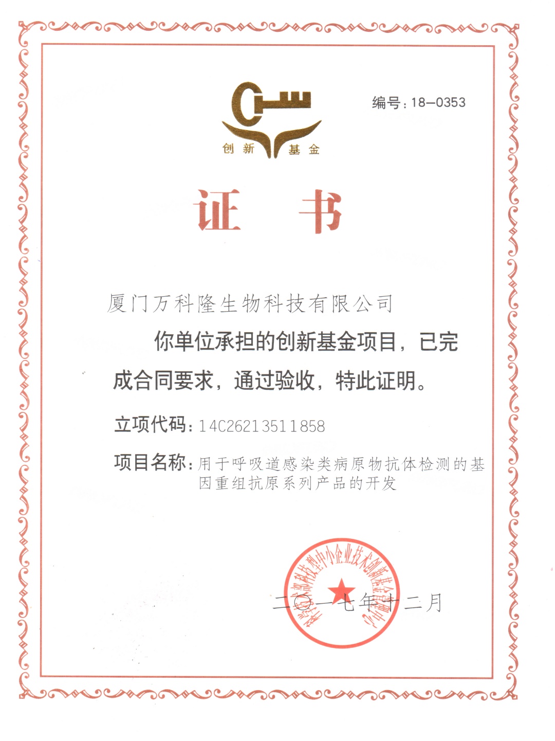 創(chuàng)新基金證書